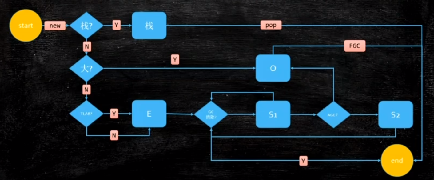 (1) 当我们new出一个对象,JVM会首先尝试往栈上分配,如果能够分配得下,就分配到栈上分配到栈上的对象有好处就是不需要GC进行管理,什么时候不需要用到此对象了,将对象出栈就可以了。但是分配到栈上的对象是有要求的:第一,对象比较小,因为栈空间本来就不够大;第二,对象比较简答。