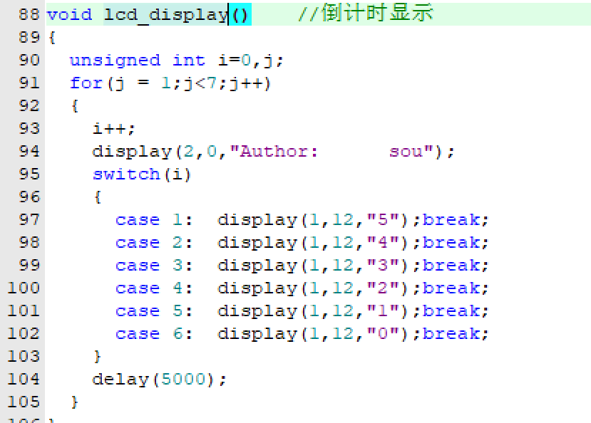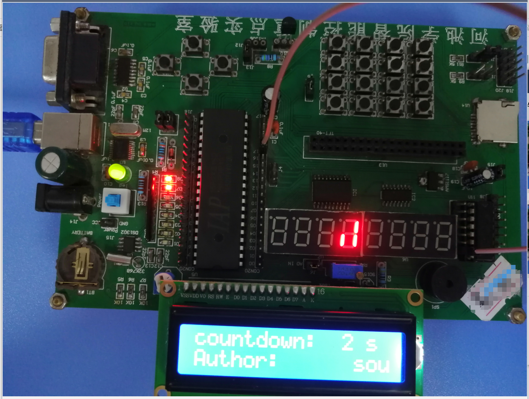 - 采用1602液晶显示屏倒计时五秒,并显示作者名字;