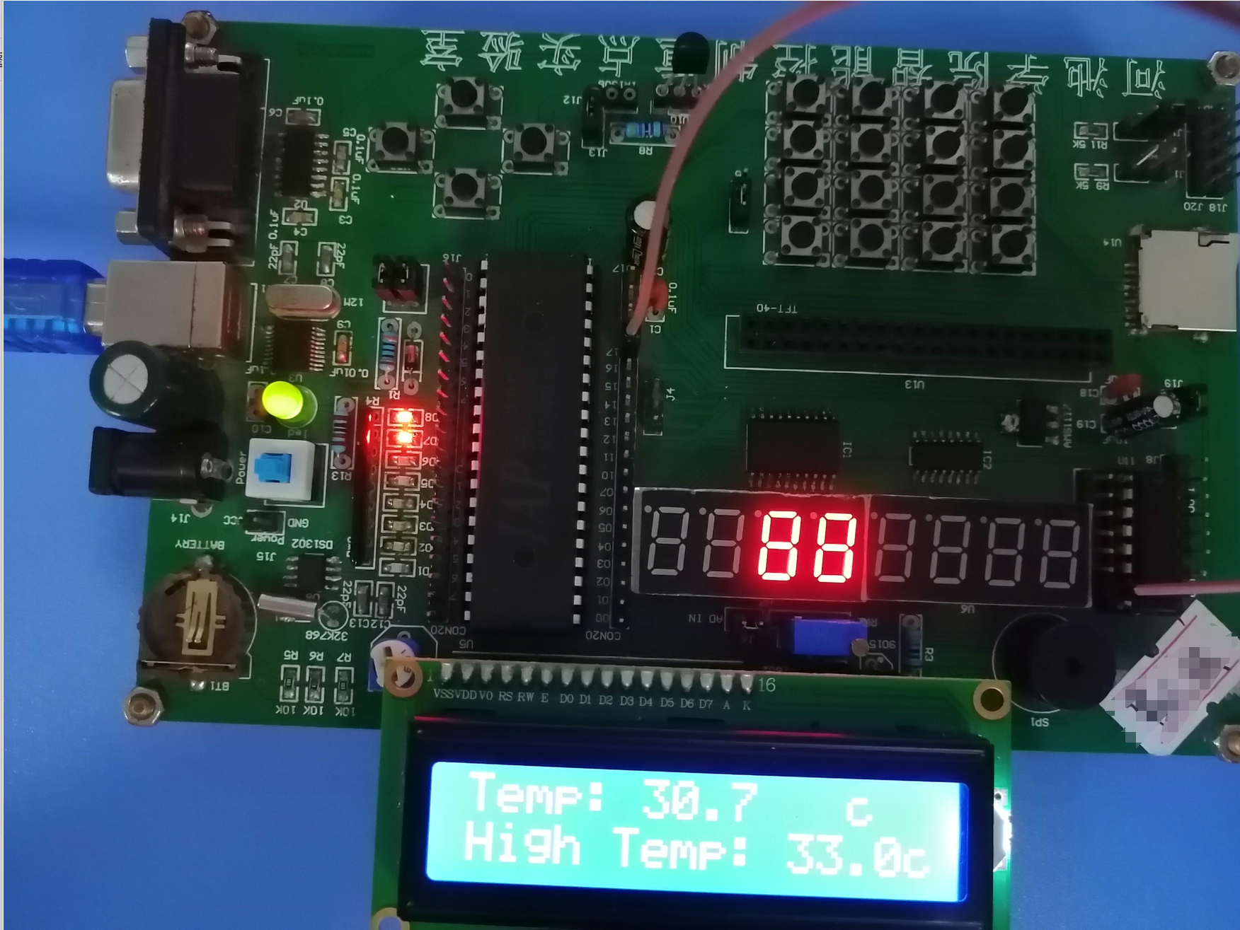 在完成上述基本功能后,可以在系统中再加入独立按键(按键设置上下限温度的数值)、DS1302时钟(实时显示时间)。