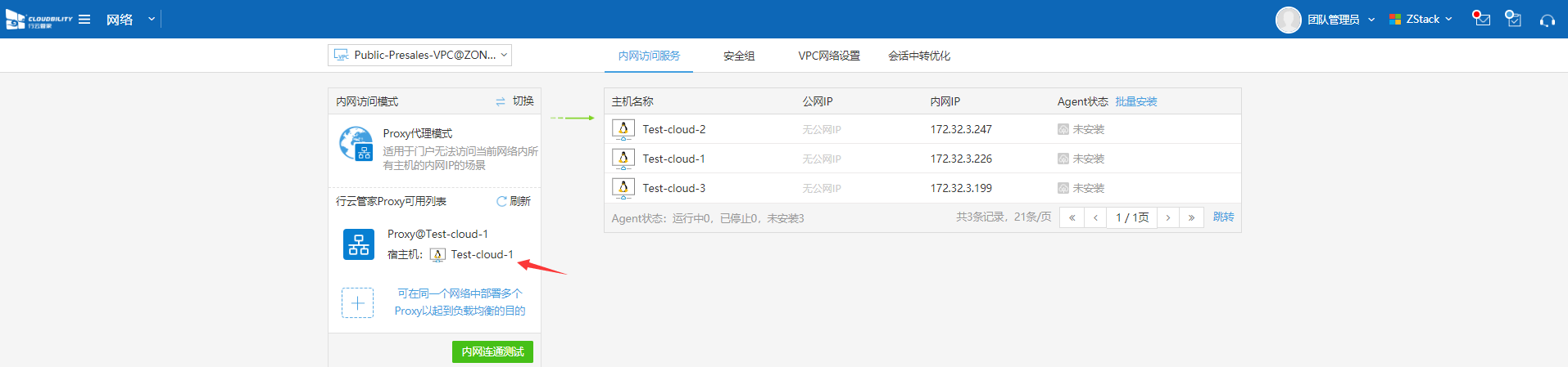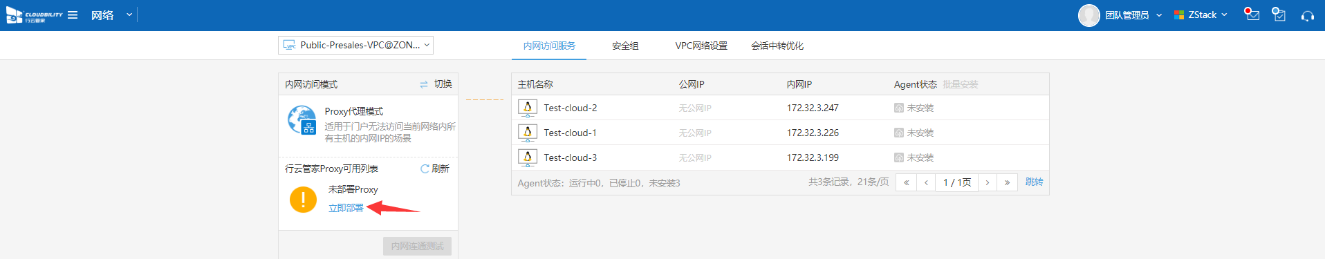 网络详情页切换网络访问模式为“Proxy代理模式”,在“可用列表”中点击“立即部署”,如图3-2所示。