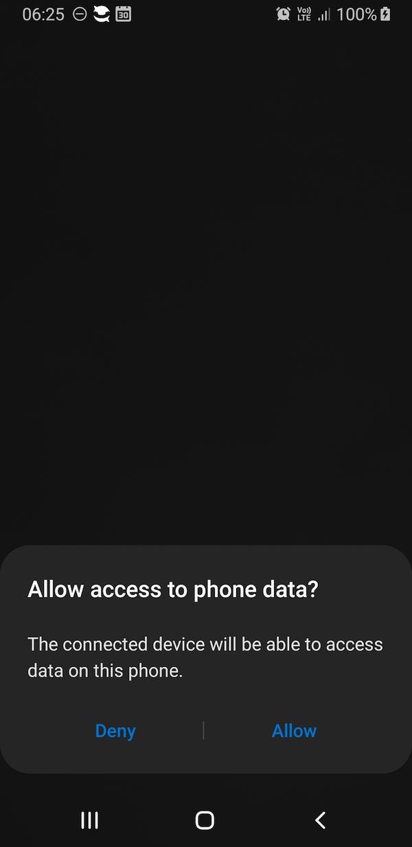 要使用 gPhoto2,首先必须将移动设备插入计算机,设置为 MTP 模式,并且授予计算机与它交互的权限。这通常需要在你的移动设备上操作,往往是在屏幕上按下一个按钮,以允许其文件系统被刚刚连接的计算机访问。