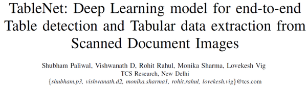 二、TableNet: Deep Learning model for end-to-end Table detection and Tabular data extraction from Scanned Document Images