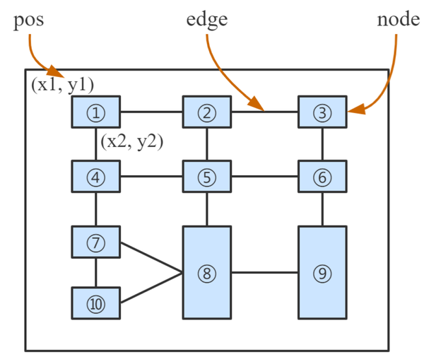 首先,作者解释了任务的具体内容。在表格识别问题中,可以将表格中的每个单元格视为一个节点,节点与它的邻域可以理解为边。如果用 N 表示节点集,用 E_C 表示完全连通的边,则表格结构可以用一个完整的图来表示 G=<V, R_C>,R_C = EC x {vertical, horizontal, unrelated}。我们可以把这个问题解释为:给定一组节点 N 及其特征,尽可能精确地预测节点对之间的关系 R_C。由于 R_C 描述每个节点(表格的单元)的互相关系,计算量颇大,文中只考虑了单元格周围相邻的格子,也就是利用 K - 最近邻(KNN)方法构造 R_C,它包含每个节点与其 K 个最近邻之间的关系。每个节点包含三种类型的信息,即文本内容、绝对位置和图像,如图 3 所示。然后,利用结构关系来建立基本的图结构,整个结构可以如图 4 所示。为了提高准确度,分别训练水平和垂直关系。对于水平关系,将每条边标记为(1: 在同一行中,或 0: 不在同一行中)。对于垂直关系,将每条边标记为(1: 在同一列中,或 0: 不在同一列中)(图 4)。