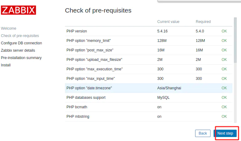 初始化地址http://172.16.210.56/zabbix/setup.php