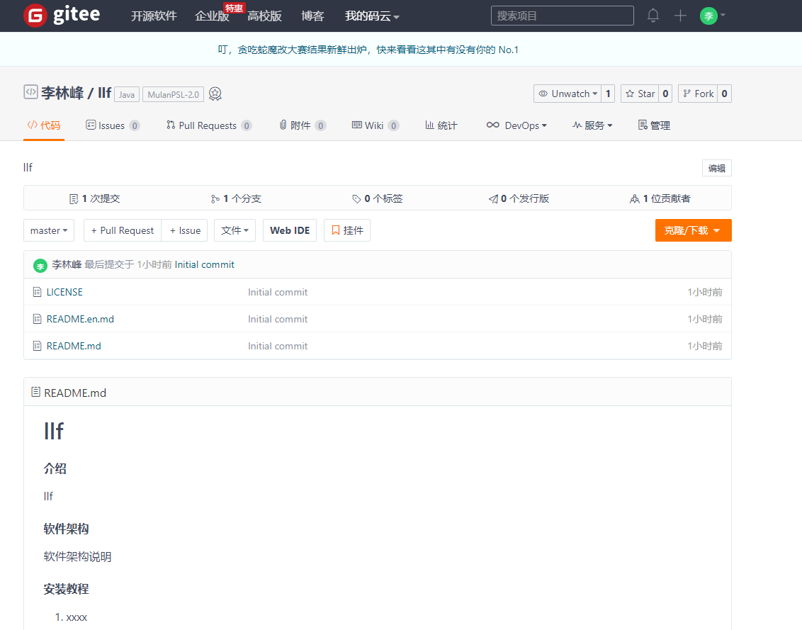 码云平台上创建的代码仓库链接为:https://gitee.com/houge_madaima