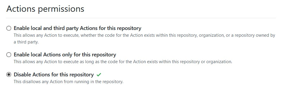点击仓库的设置,进入 Actions 页面,点击禁用