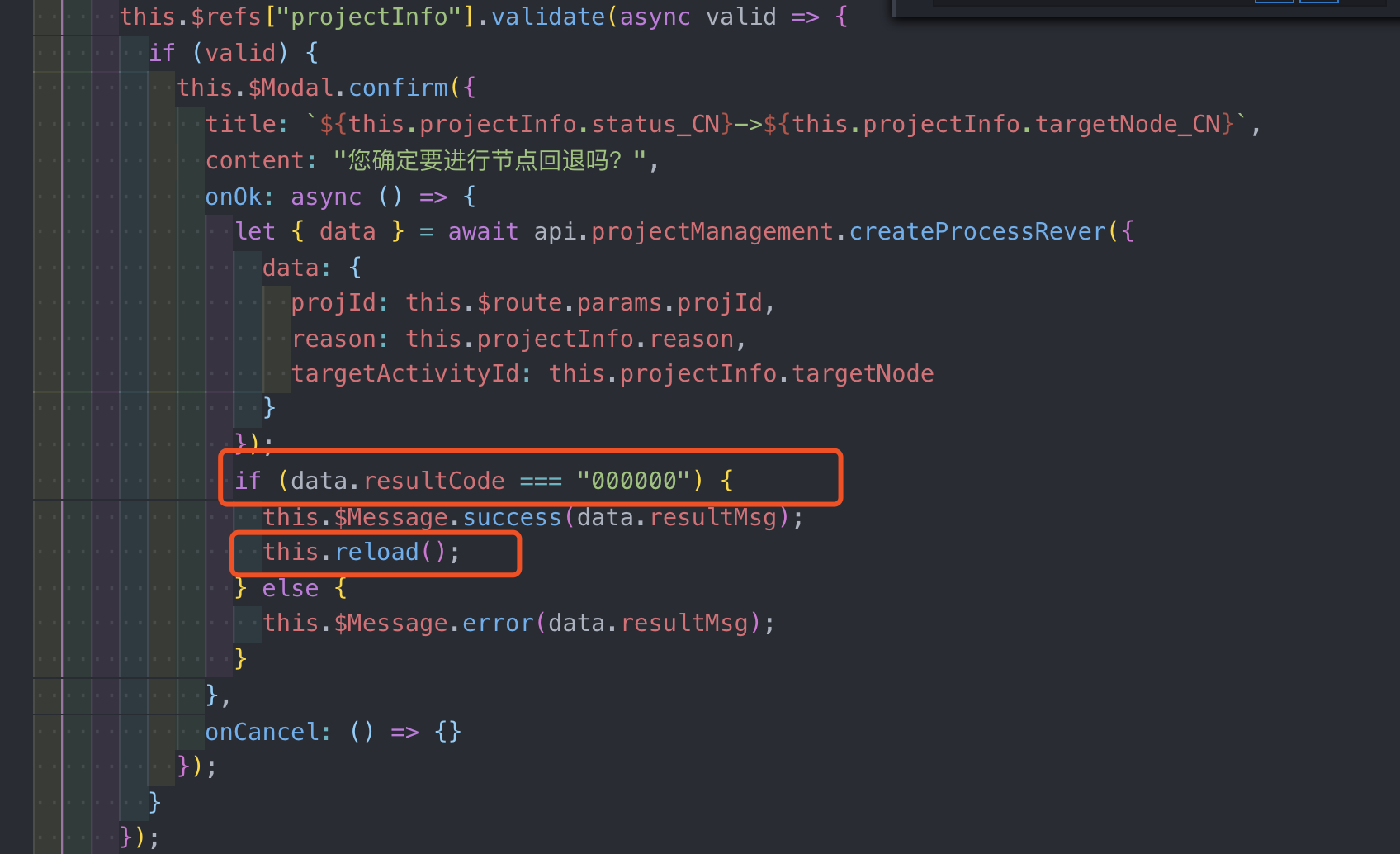 ③后台返回"000000"成功之后调用this.reload重载,完美解决。
