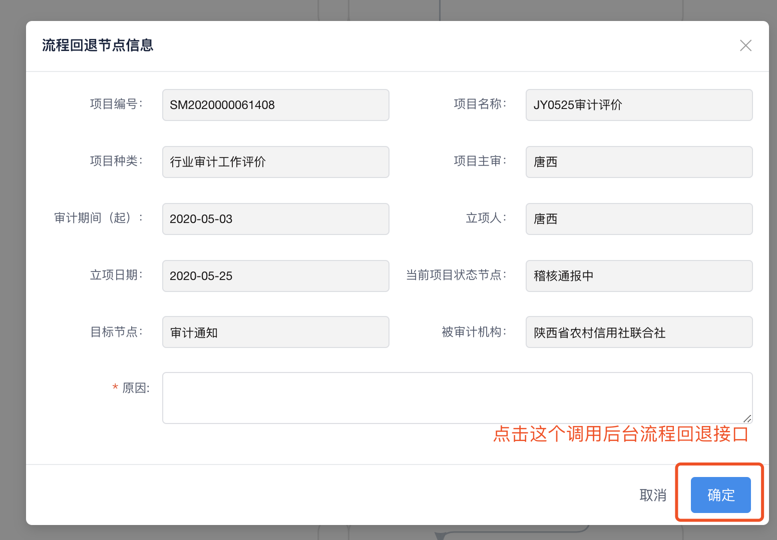 需求:点击某个节点,输入回退原因,调用后台接口回退成功之后,想刷新流程图。