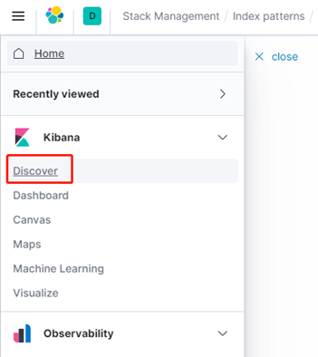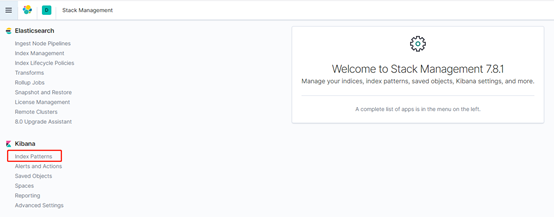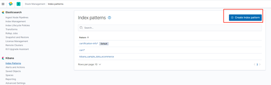 - 点击 【Index Pattern】,再点击 【Create index pattern】 按钮