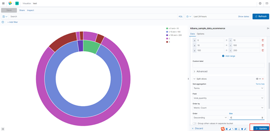 - 在右边【Buckets】栏填写视图条件,点击右下角【Update】按钮,生成视图