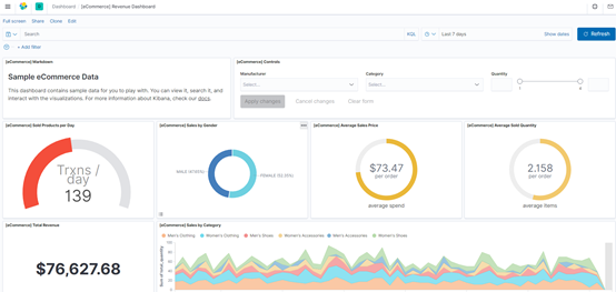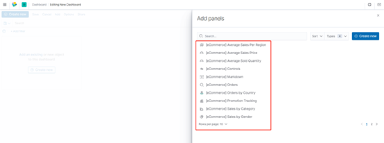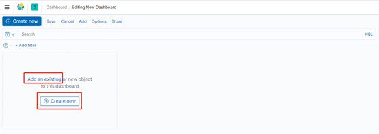 - Kibana 仪表板(Dashboard) 展示保存的可视化结果集合。就是可以把上面定义好的图表展示。