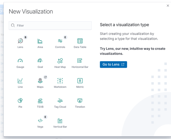 - Kibana可视化控件基于 Elasticsearch 的查询。利用一系列的 Elasticsearch 查询聚合功能来提取和处理数据,再通过创建图表来呈现数据分布和趋势。点击左侧栏【Visualize】,再点击【Create Visualization】,选择要创建的图表类型。