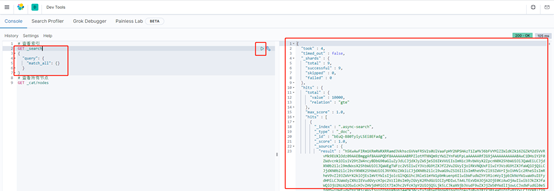 - 控制台插件提供一个用户界面来和 Elasticsearch 的 REST API 交互。控制台有两个主要部分: editor ,用来编写提交给 Elasticsearch 的请求; response 面板,用来展示请求结果的响应。点击左侧边里的【Dev Tools】