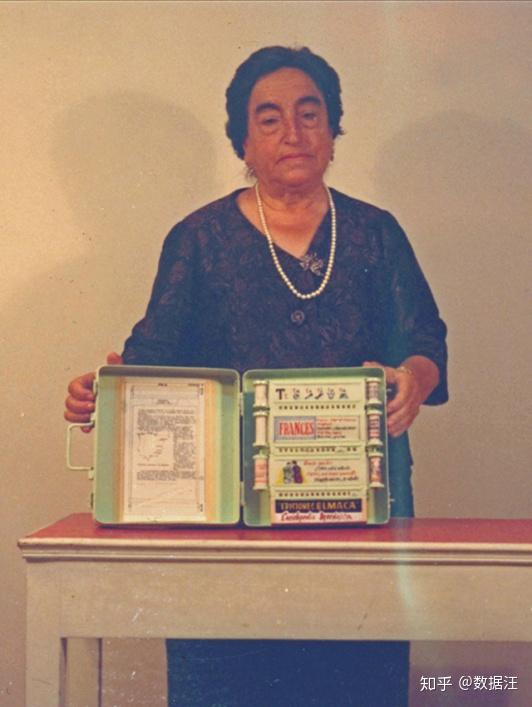几十年后的1949年,西班牙语教师安吉拉·鲁伊斯·罗伯斯(Angela Ruiz Robles)因发明了“机械百科全书”(Mechanical Encyclopedia)而小小出名了一把。这是种更精细的压缩信息的方法,用卷轴和各种巧妙机制将文本和音频塞进一个小小公文包里,内容相当于好几本书。
