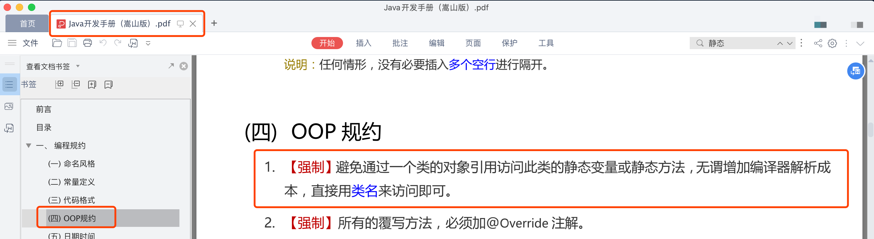 所以阿里巴巴开发手册不推荐使用对象来调用静态方法,而是直接用类名来调用,避免增加编译器解析成本。