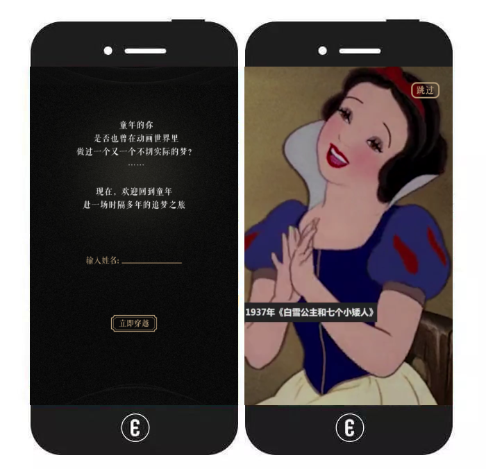 内容特色:该H5以视频为主,旨在宣传林肯中心推出的六一活动。用户进入首页并输入姓名后,可通过点击“立即穿越”浏览视频,视频包含动画发展史中的各种知名动画,如《汽船威利》、《大力水手》、《白雪公主和七个小矮人》等。视频结束后,用户可点击“生成”按钮,以获得一张合成海报,并根据海报页下方的“活动详情”按钮了解相关内容。