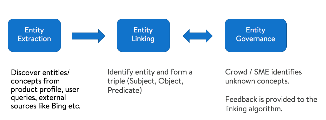 为了构建产品到实体图,我们首先从产品内容中提取实体,然后将它们链接到抽象或具体的概念,形成三元组。我们添加了一个管理层,允许人们在一定的置信水平下得到有效的三元组,以保持高质量标准。