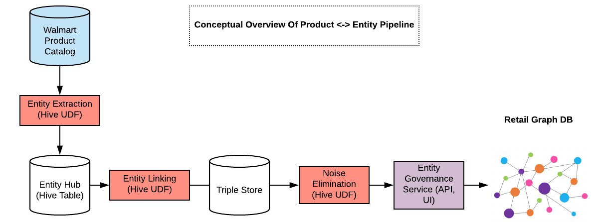 我们有两条管道-一条用于生成产品<->实体,另一条用于生成产品<->产品。它们定期在我们的数据平台团队管理的Hadoop集群上运行。以下是对数据处理管道的高度概述: