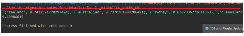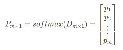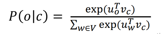其中,d为与m个outside词的点积,由于两个向量的点乘可以表示其相似度,进一步可用于表示其出现的概率大小,从而得到概率表示: