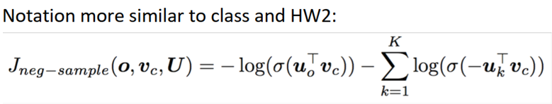 训练一对真词(上下文窗口中的中心词和单词)与几个噪声对(中心词和随机词)的二元逻辑回归(在标准的word2vec和HW2中都使用了负采样)