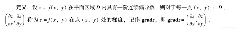 在高等数学(同济)中关于梯度的定义如下,及梯度是各个自变量的偏导组成的向量。