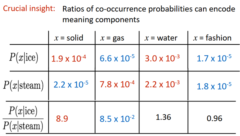 重要信息:共现概率的比值能够编码单词相似度的信息