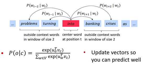 1)Skip-gram(SG):给定中心词预测窗口context(outsides)