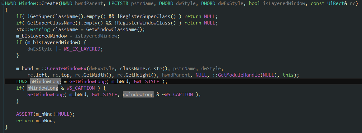 window->Create(hParent, WindowType::kClassName, WS_OVERLAPPEDWINDOW & ~WS_MAXIMIZEBOX, 0);