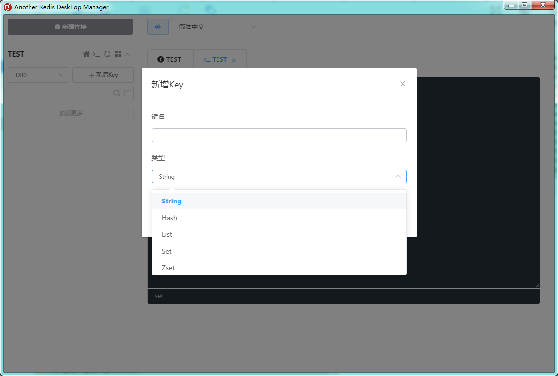 界面操作支持常用的 5 种数据类型,有其他需求的可以通过命令控制台进行新增。