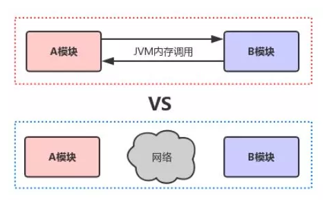 所以分布式系统很重要的特点就是服务间要跨网络进行调用,我们来看下面的图: