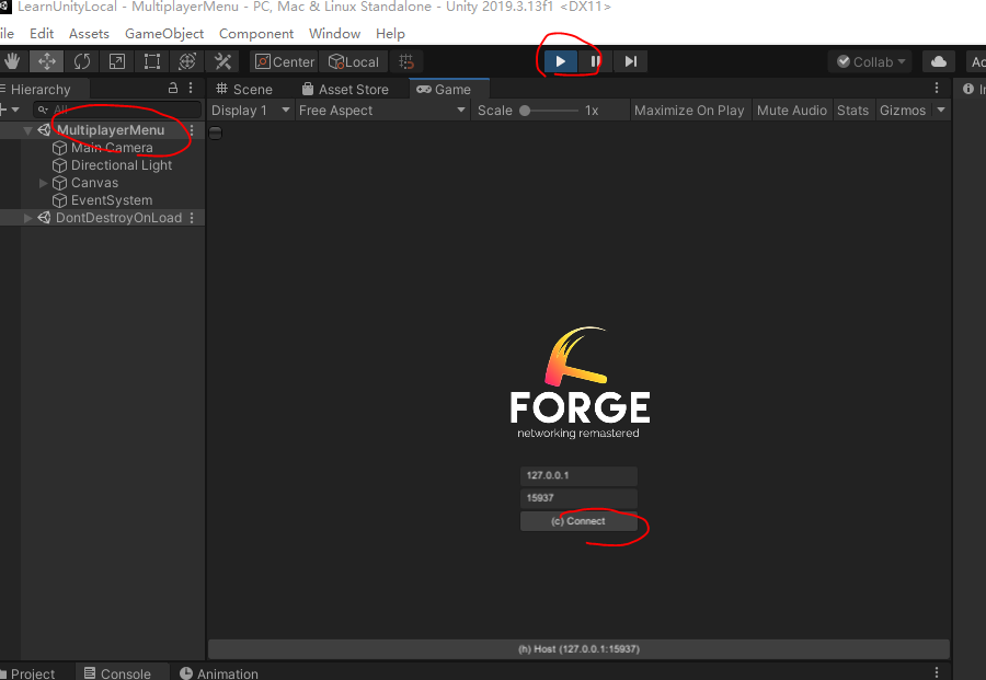 - Click the Host (127.0.0.1:15937) button on the bottom of the game view
