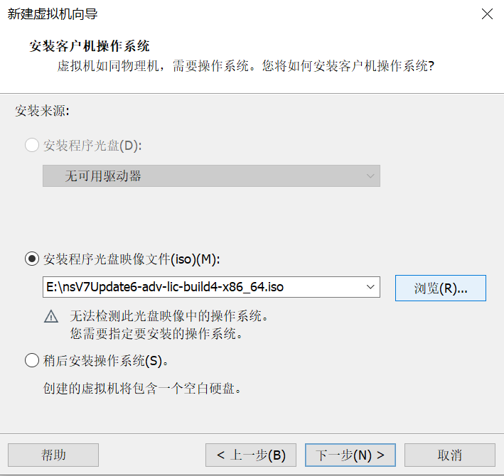 - 接着安装客户机操作系统(中标麒麟),这里我们选择的是程序光盘镜像文件