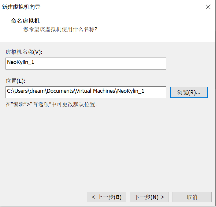 - 下一步,我们可以自定义虚拟机的名称以及安装位置,由于我的电脑磁盘容量不大,这里直接选的默认位置,建议大家装到其他盘里