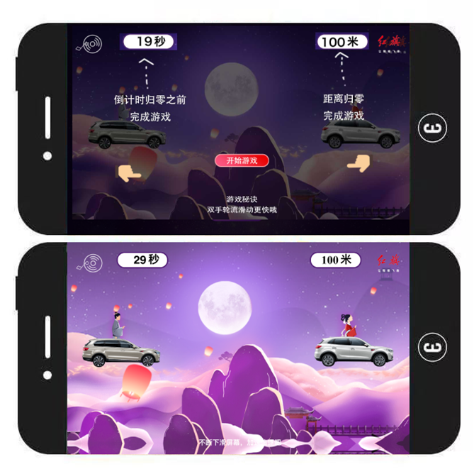 内容特色:这是一款小游戏H5。用户进入首页后,可先阅读游戏规则,再选择性别、输入昵称并进入游戏环节。游戏主要玩法为:在30秒内双手轮流滑动屏幕,以助牛良织女相聚成功。游戏结束后,用户可根据各种提示按钮获得一份宣传海报、重玩一次、返回首页、查看排行,或选择一款红旗车型并提交试驾信息。