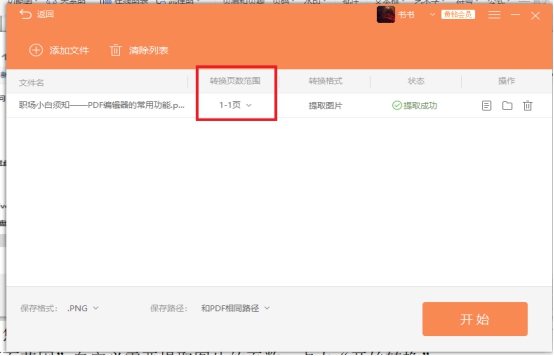 四、您可以直接点击“开始转换”将PDF文件中的所有图片都提取出来,也可以点击“转换页面范围”自定义需要提取图片的页数,点击“开始转换”;