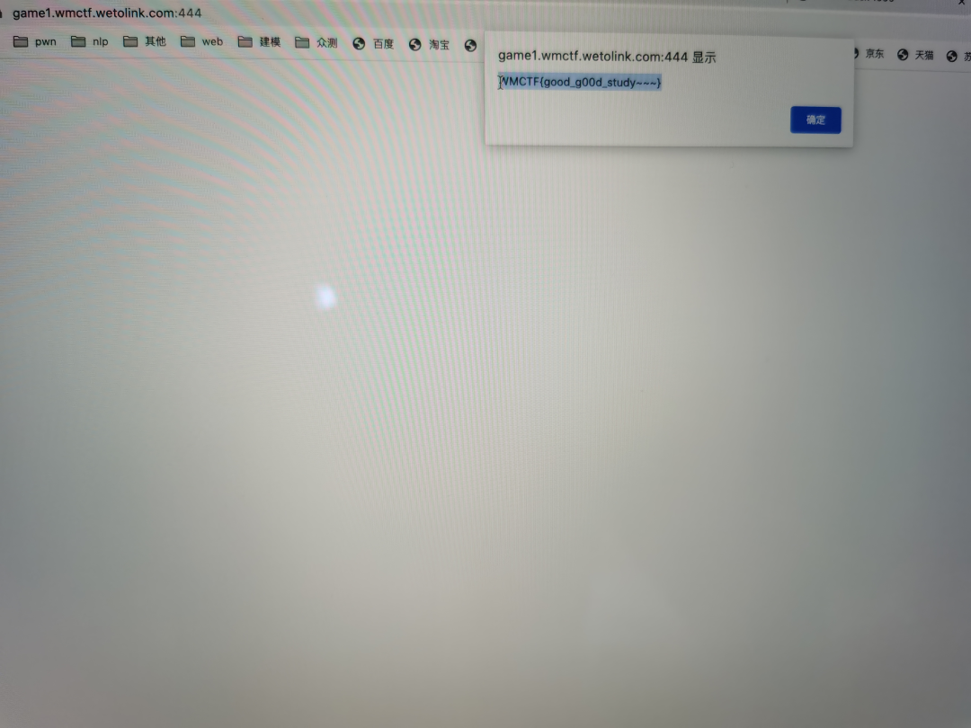 import requestssess=requests.session()url='https://game2.wmctf.wetolink.com:4432'sess.get(url)def tank_go(direct):files = {'upfile': open("{}.wav".format(direct), 'rb')}res=sess.post(url,files=files)actions=['up','up','left','left','down','down','down','down','right','right','right','right','up','up','right','right','down','down','down','down','right','right','up','up','right','right','right','down','down','down','down','down','down','down','down','right','right','right','right','right','right','right','right','right',]for action in actions:tank_go(action)res=sess.get(url)print(res.text)