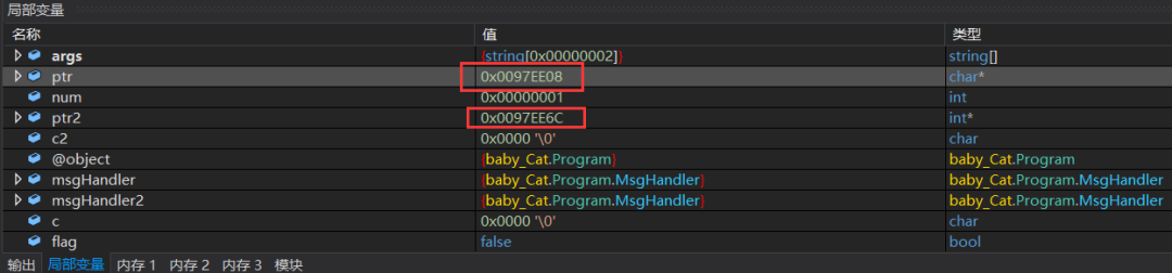 num变量在内存中位置以及值