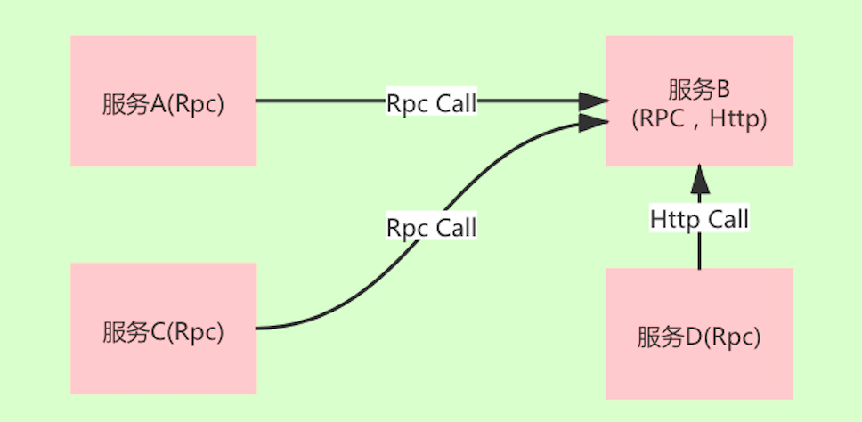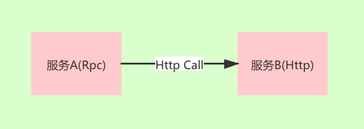 下图中有两个服务,最开始都是 Rpc 协议,服务 A 通过 Rpc 方式调用服务 B。