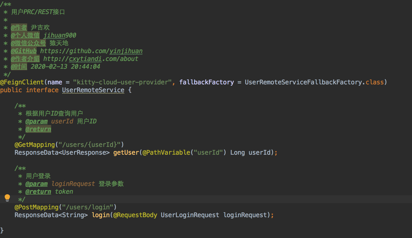 关于作者:尹吉欢,简单的技术爱好者,《Spring Cloud 微服务-全栈技术与案例解析》, 《Spring Cloud 微服务 入门 实战与进阶》作者, 公众号 猿天地 发起人。个人微信 jihuan900, 欢迎勾搭。