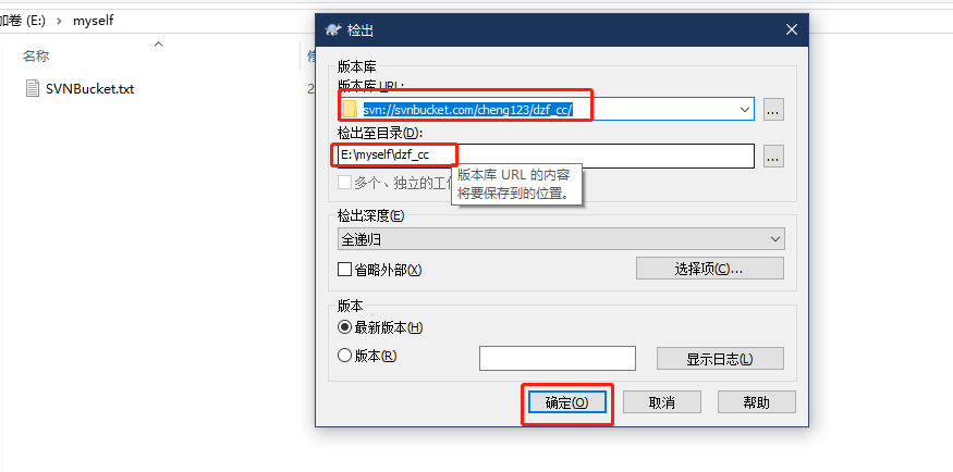 填写仓库地址,填写保存目录,输入网站登录用户名密码。