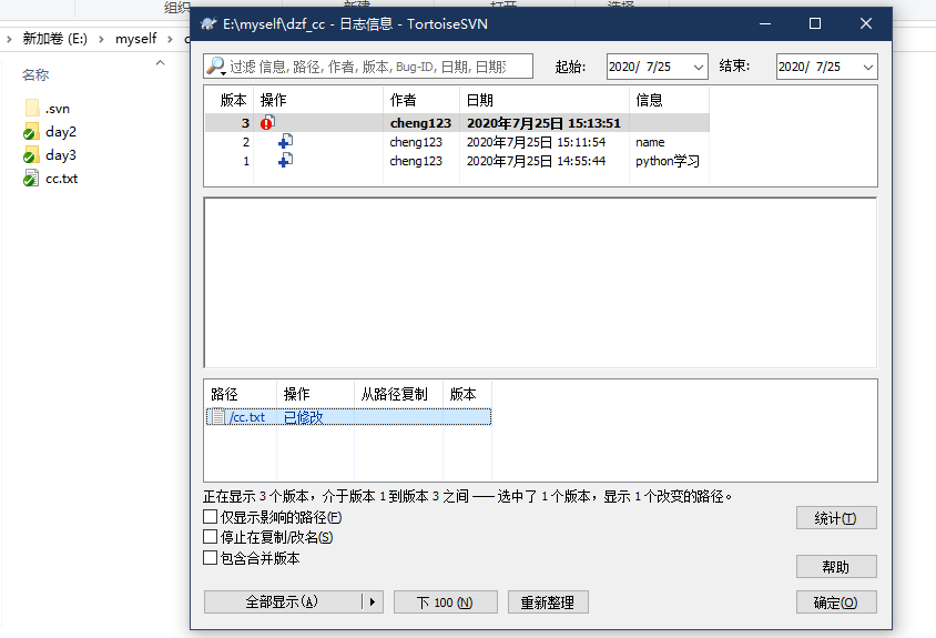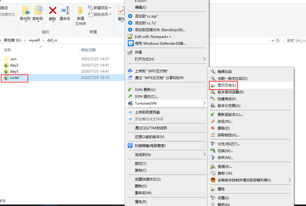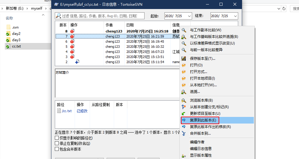 在日志信息选择需要恢复的版本,右键选择“复原到此版本”