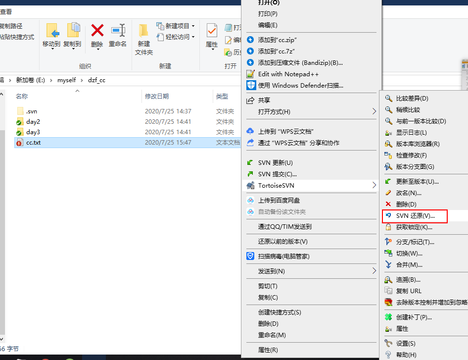 右键修改的文件(未提交),点击SVN还原,可还原到文件修改前的版本