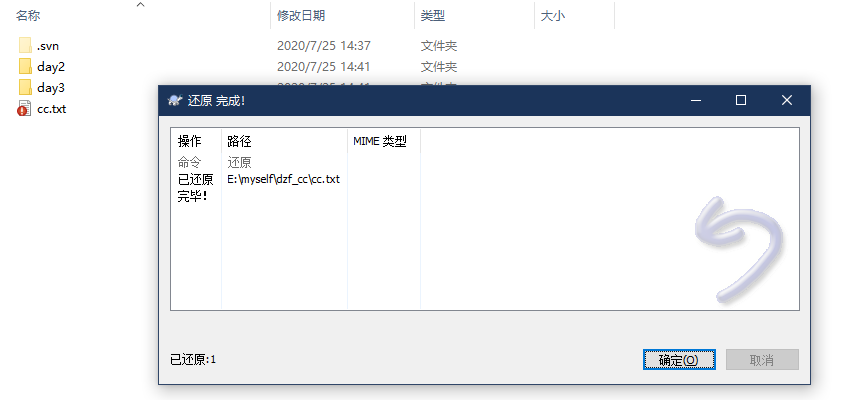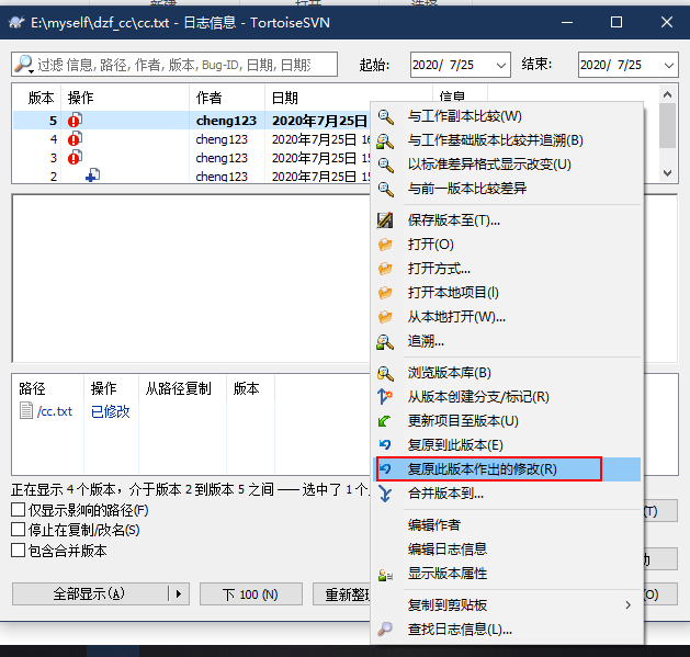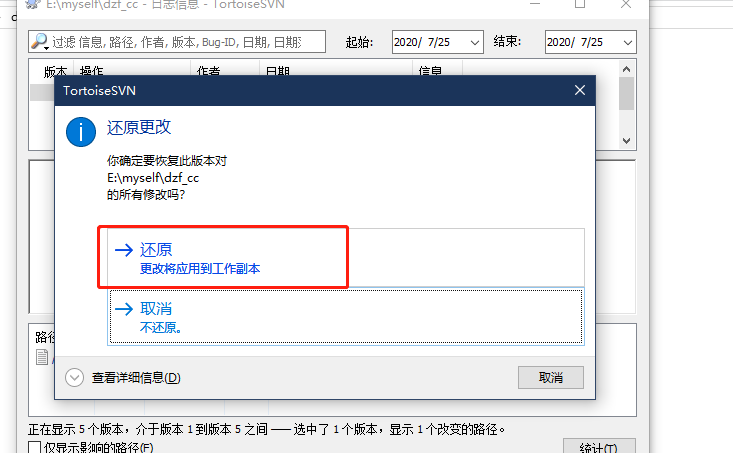 找到已提交文件的日志记录,点击“复原此版本作出的修改”