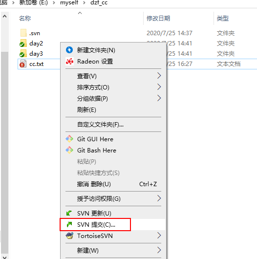 提交代码也很简单,右键“SVN Commit…”,填入提交描述,就可以把本地提交的代码提交到服务器了。