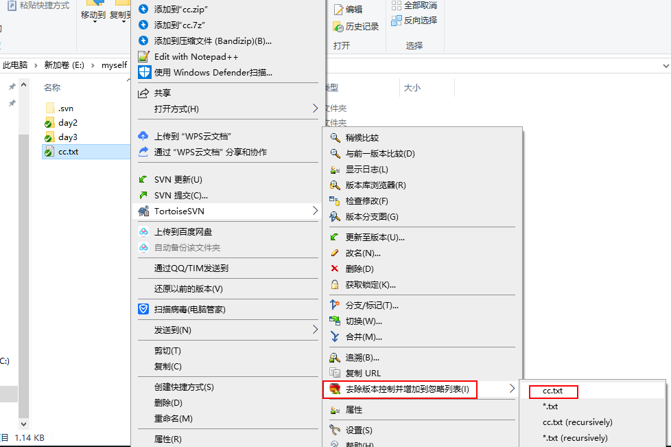 右键“去除版本控制并增加到忽略列表”,选中需要忽略的文件