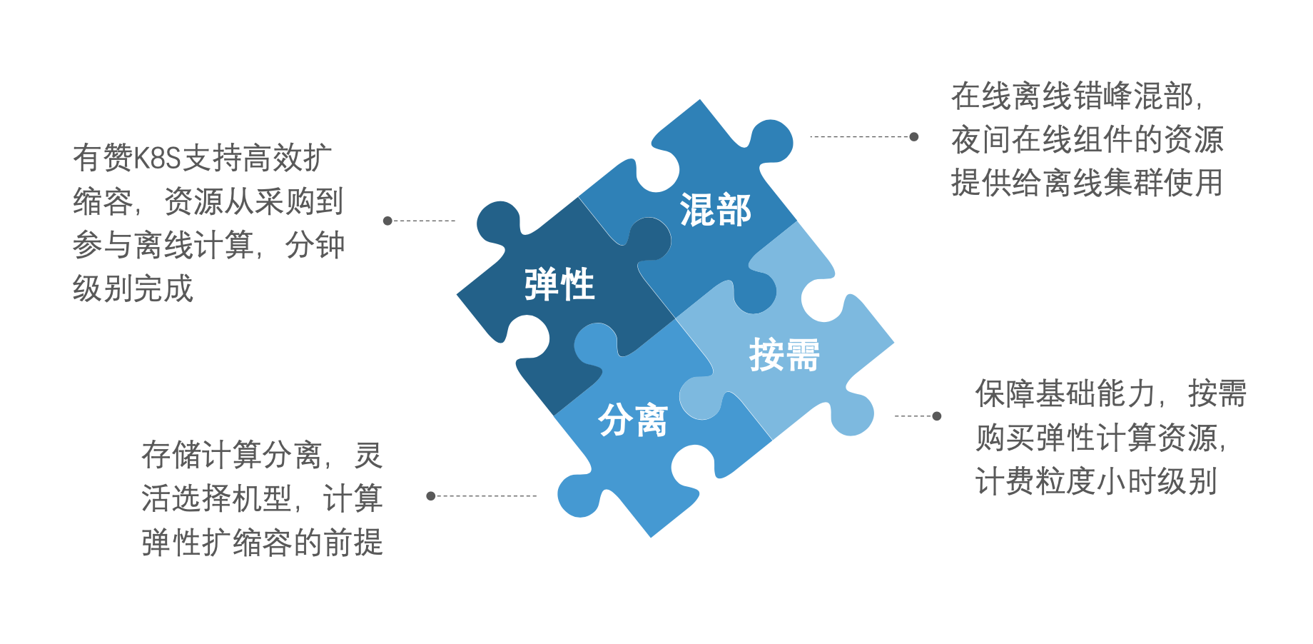 第一点就是扩缩容。前文提到的扩缩容的能力是资源浪费很重要的一部分。我们上半年把离线产品的容器化基本做完了,这样离线计算扩缩容的时候响应速度是非常高的,基本上是分钟级的采购。