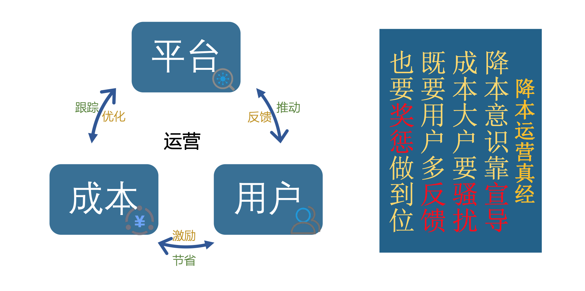 前面提到的四块内容,实际上是偏技术层面的阶段性的做法。但从长远来说,如果要把成本治理长效的做下去,技术方案虽然必须的,但同时接入企业的运营机制,也是一个关键动作。