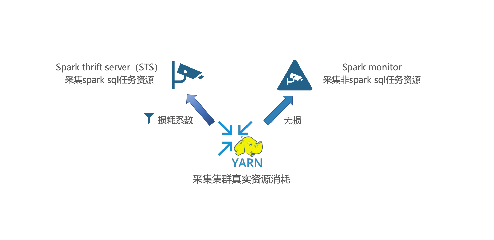 而Spark SQL方式的任务,因为任务调度本身有一个预热、执行和资源回收三个阶段,而我们通过 Spark thrift server( STS )采集到的数据,只反映执行阶段的资源使用情况,不包含预热和回收部分。所以我们在通过STS采集到的资源使用数据的基础上,乘上一个损耗系数来反映真实的资源使用情况。损耗系数目前我们跑下来基本定在 10% 。