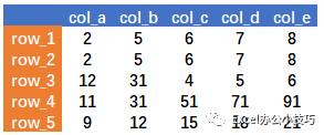 import pandas as pddata=pd.DataFrame([{2,5,6,7,8},(2,5,6,7,8),[12,31,4,5,6],range(11,111,20),range(9,23,3)],columns=['col_a','col_b','col_c','col_d','col_e'],index=['row_1','row_2','row_3','row_4','row_5'])