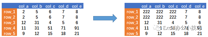 可以看到,col_a列数值等于2的数据被替换成了111。